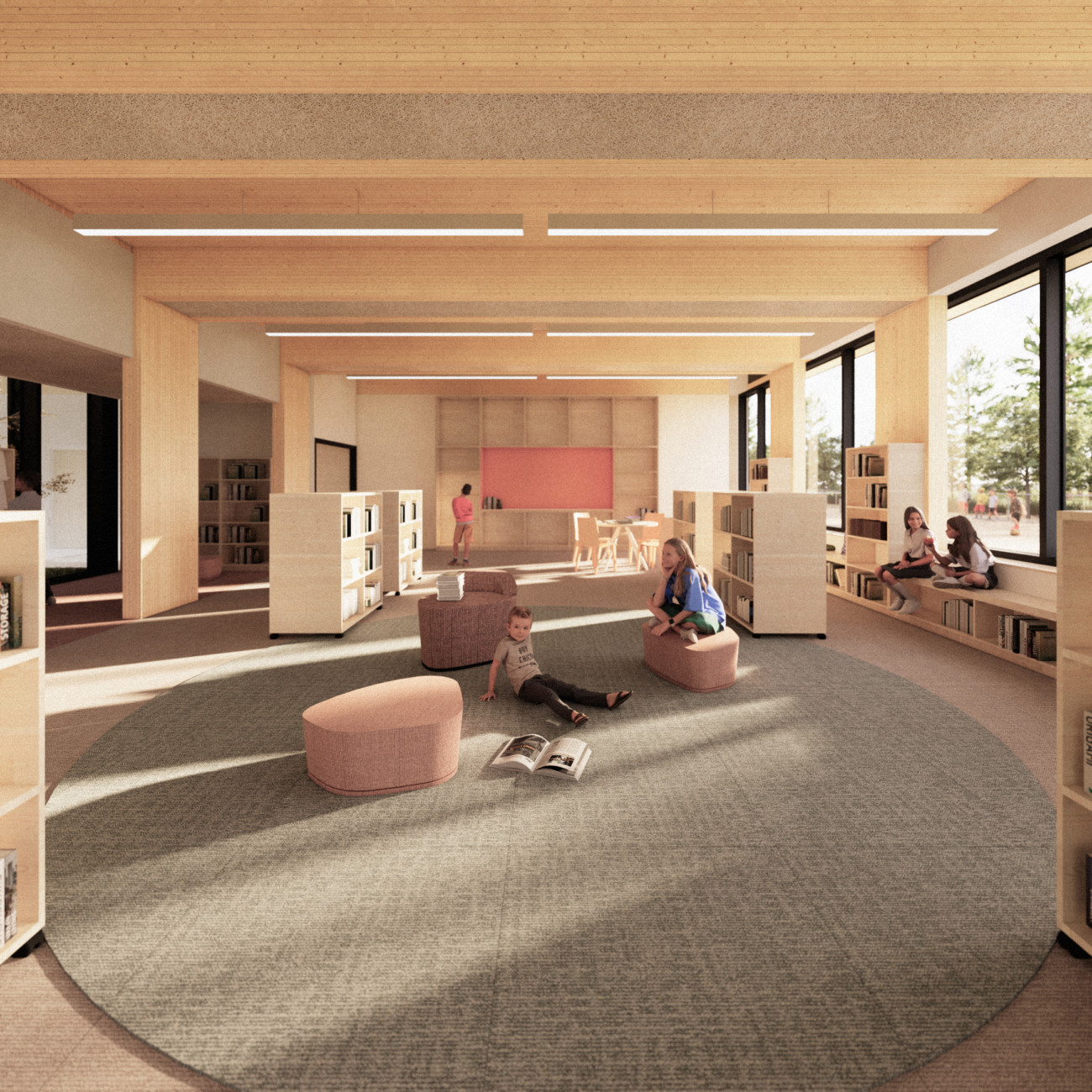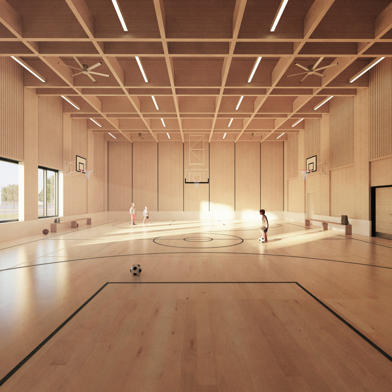The design takes into account the geological and community heritage of the site, aiming to reflect and celebrate its long-standing connection to the natural world and local culture, with regenerative landscaping featuring native species incorporated into the site. The design will also cater to the existing school community, accommodating the Poplar Panthers’ active lifestyle with suitable spaces for sports and events like the Strawberry Festival.