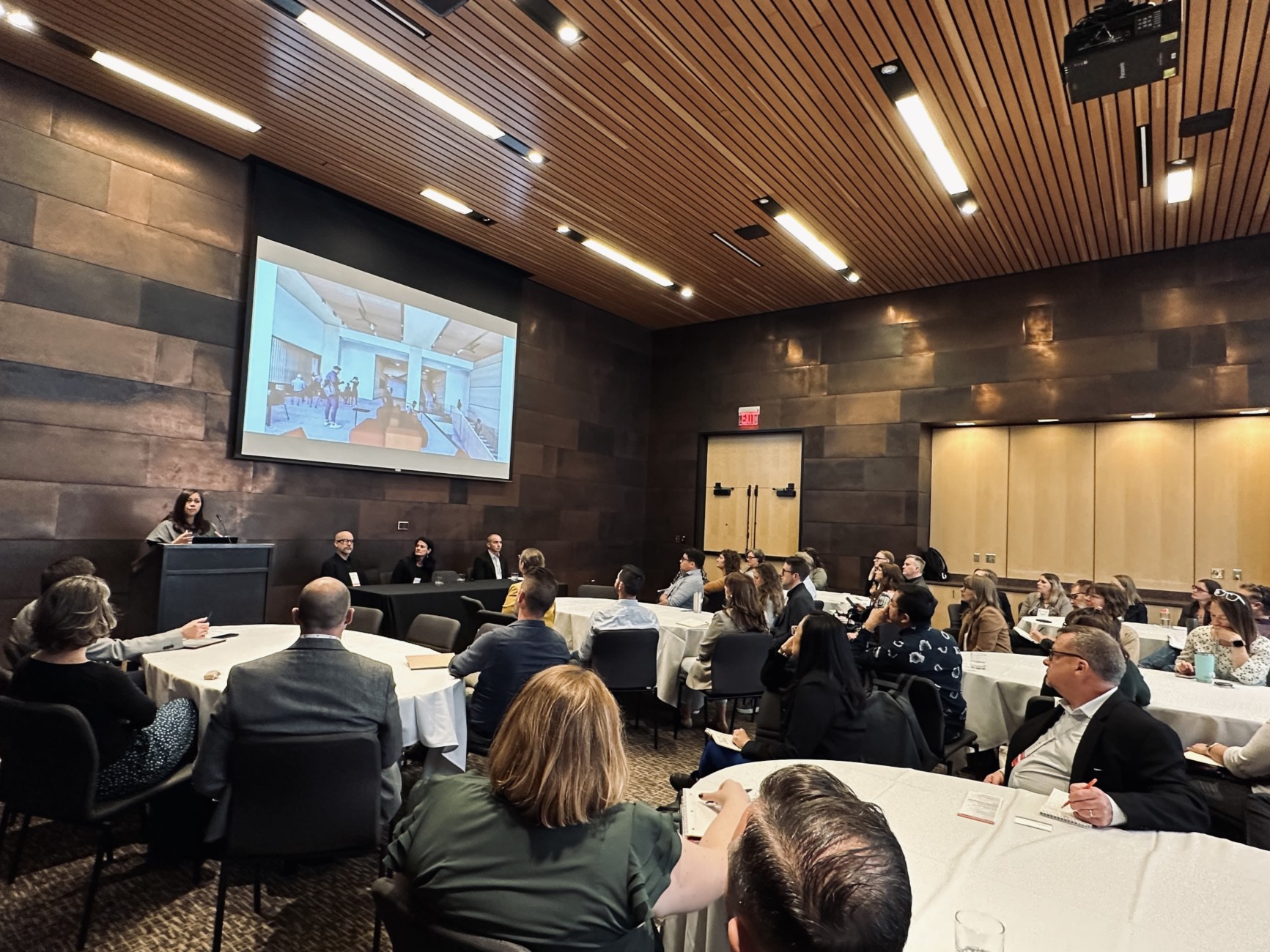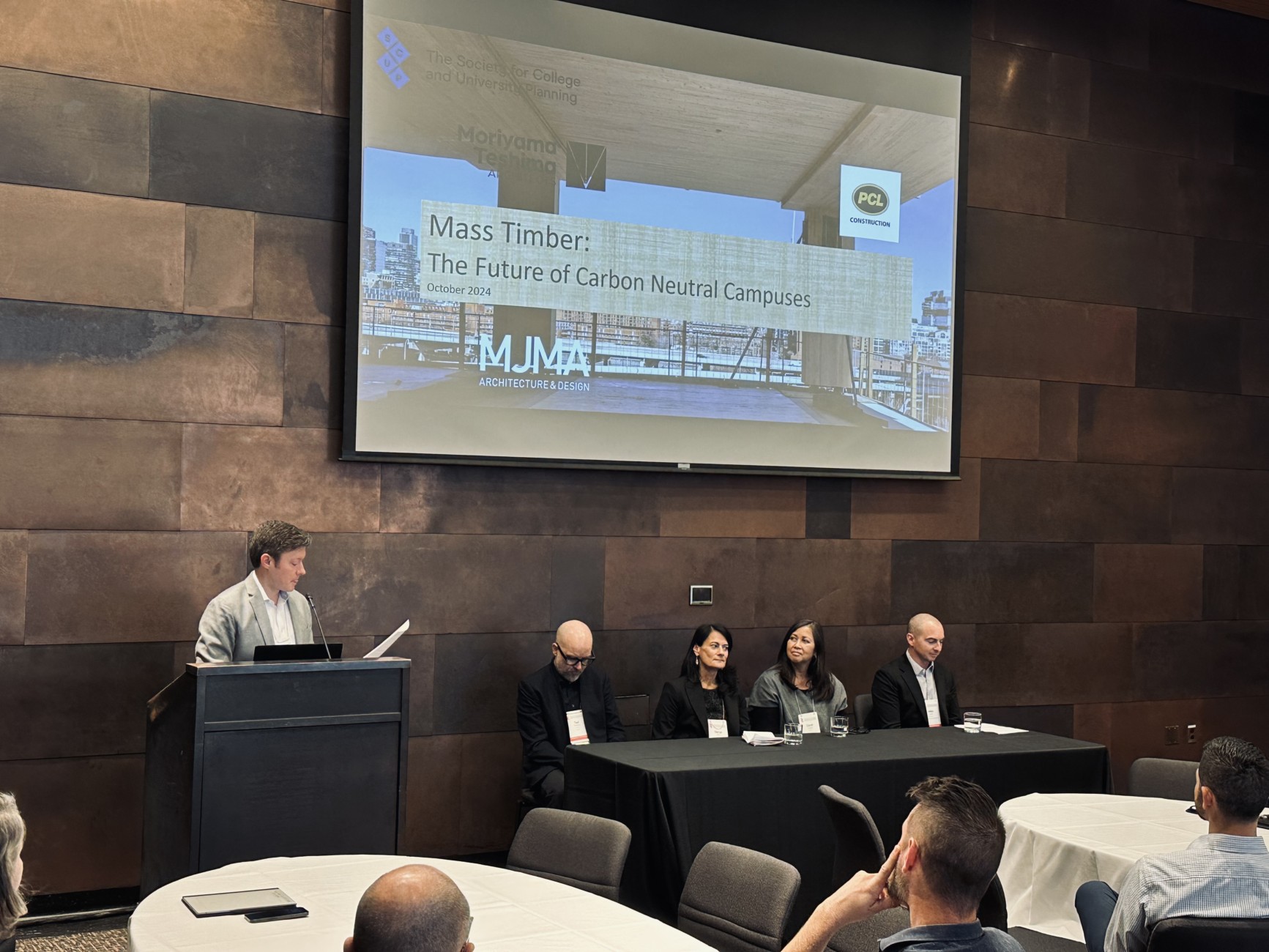 MTA Partner Carol Phillips presented at the Society for College and University Planning (SCUP) North Central 2024 Regional Conference in Minneapolis, Minnesota, where she discussed the ways in which higher education institutions must lead by example to promote widespread adoption of carbon sequestering mass timber while also delivering an enriched student experience. Alongside Nerys Rau of George Brown College, Mike Love of PCL Construction, and Ted Watson of MJMA, Carol used Limberlost Place at George Brown College (our joint project with Acton Ostry Architects) as a case study to explore the benefits and challenges of employing mass timber as a structural system in large-scale building projects, particularly from the lens of design, manufacturing, and policy.