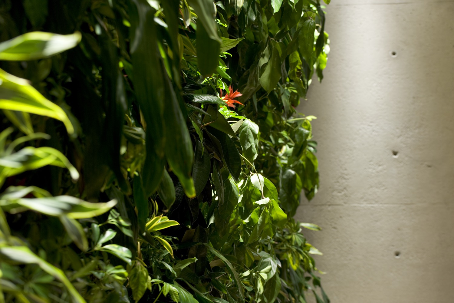 The incorporation of a green bio wall in the meditation room fosters a connection to nature, while simultaneously working to enhance humidification and air quality, thus reducing the mechanical load on the building — a living wall that cleanses the air and, hopefully, the human spirit.