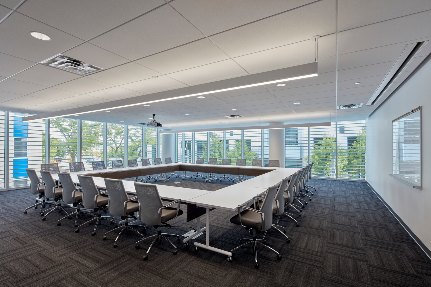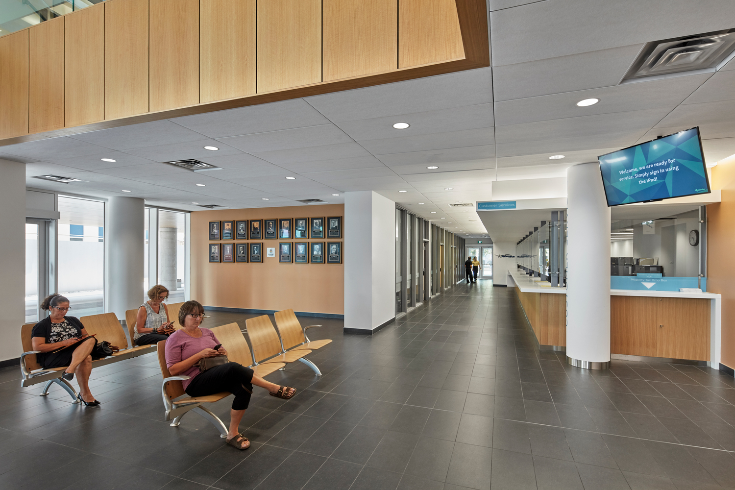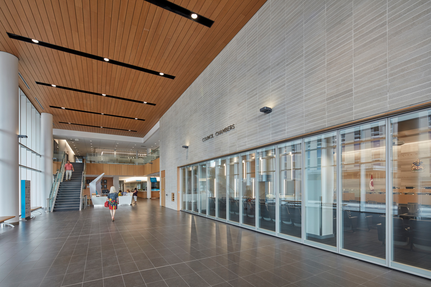 Barrier-free, universal, and inclusive, the building improves accessibility through streamlined public service areas while enhancing security and convenience for working staff. Its two-storey atrium and glazed curtain wall provides sightlines into the civic square and offers visitors outside views into the warm and welcoming atrium.